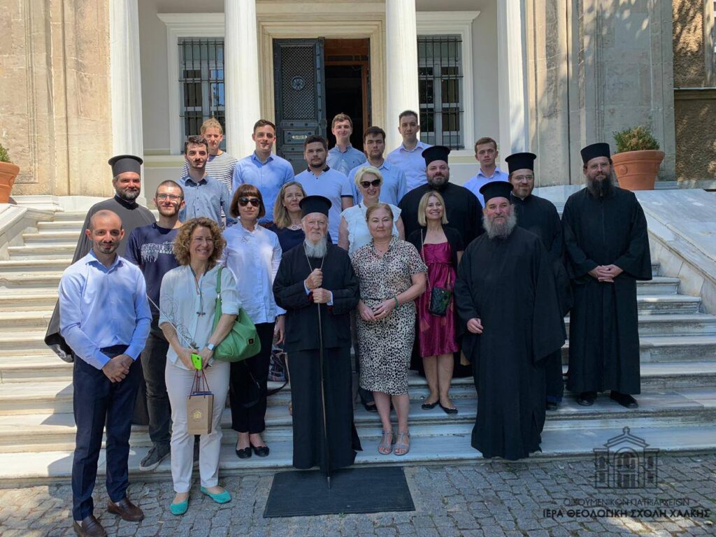 Μετά το πέρας της Θείας Λειτουργίας, ο Παναγιώτατος, συνοδευόμενος υπό του πατριαρχικού διακόνου της σειράς κ. Αετίου, κατέφθασε στη Μονή και Σχολή της Χάλκης, έχοντας μαζί του από το διεθνές Διπλωματικό Σώμα στην Κωνσταντινούπολη την Γενική Πρόξενο της Ελλάδος κ. Γεωργία Σουλτανοπούλου, την Γενική Πρόξενο της Σερβίας κ. Ιvana Pejovic, την Γενική Πρόξενο της Σλοβακίας κ. Veronika Lombardini, την Γενική Πρόξενο της Πολωνίας κ. Joanna Pilecka, την Γενική Πρόξενο της Κροατίας Δρ. Ιvana Zerec και την Αναπληρώτρια Γενική Πρόξενο της Βρετανίας κ. Lorraine Fussey.