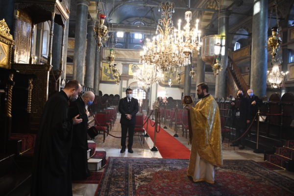 Εκκλησιάστηκαν ο Σεβ. Μητροπολίτης Ιταλίας κ. Πολύκαρπος, ο Θεοφιλ. Επίσκοπος Αλικαρνασσού κ. Αδριανός, ο Θεοφιλ. εψηφισμένος Μητροπολίτης Ισπανίας και Πορτογαλίας κ. Βησσαρίων, Άρχοντες Οφφικιάλιοι του Οικουμενικού Πατριαρχείου και πιστοί από την Πόλη.