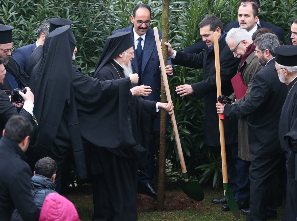 «Σας υποδεχόμαστε με χαρά και αγαλλίαση στον ιστορικό αυτό χώρο και σας ευχαριστούμε για τη συμμετοχή σας στην εόρτια αυτή σύναξη», είπε ο Οικουμενικός Πατριάρχης Βαρθολομαίος, υποδεχόμενος τον κ. Τσίπρα στη Θεολογική Σχολή Χάλκης.