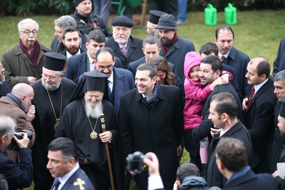 «Σας υποδεχόμαστε με χαρά και αγαλλίαση στον ιστορικό αυτό χώρο και σας ευχαριστούμε για τη συμμετοχή σας στην εόρτια αυτή σύναξη», είπε ο Οικουμενικός Πατριάρχης Βαρθολομαίος, υποδεχόμενος τον κ. Τσίπρα στη Θεολογική Σχολή Χάλκης.