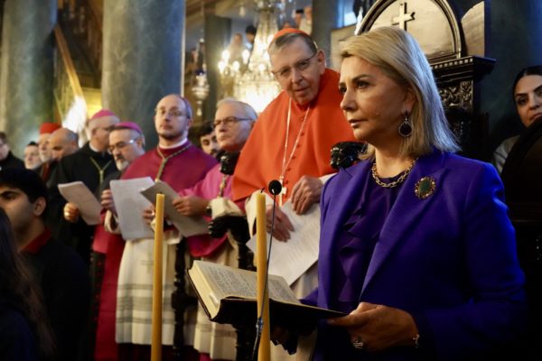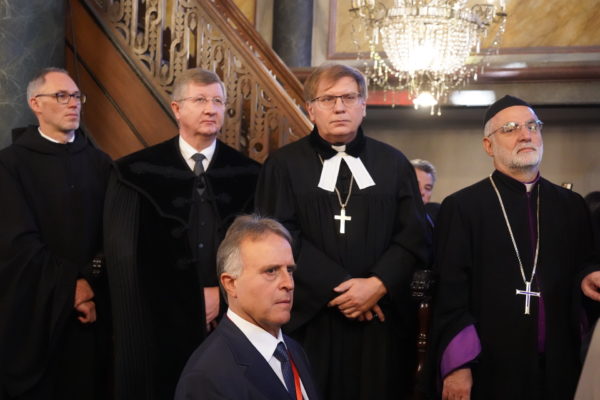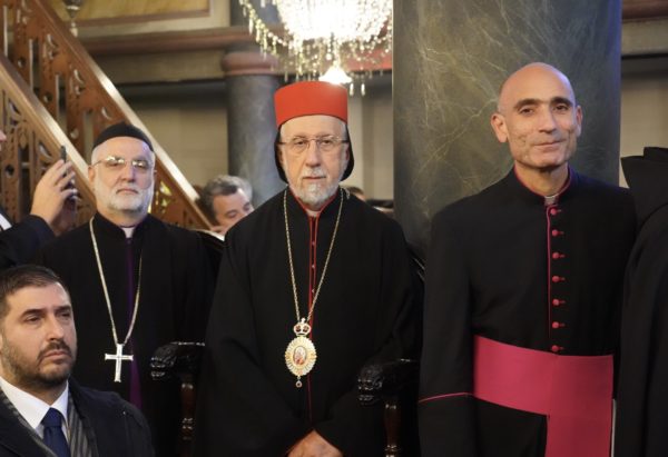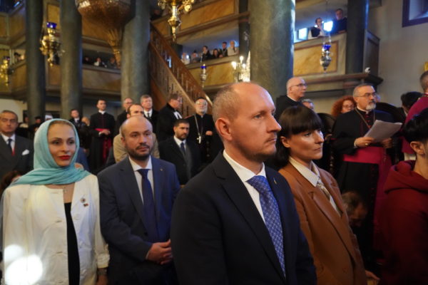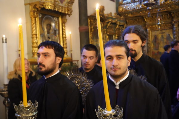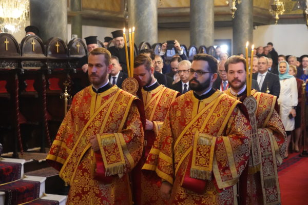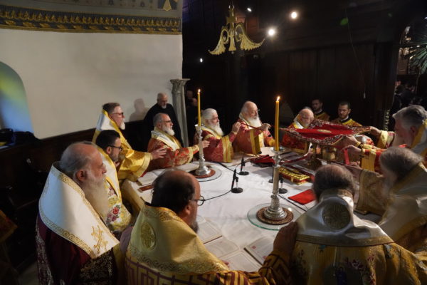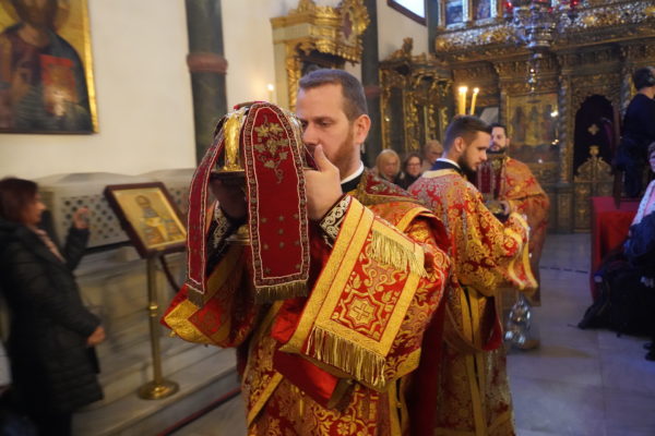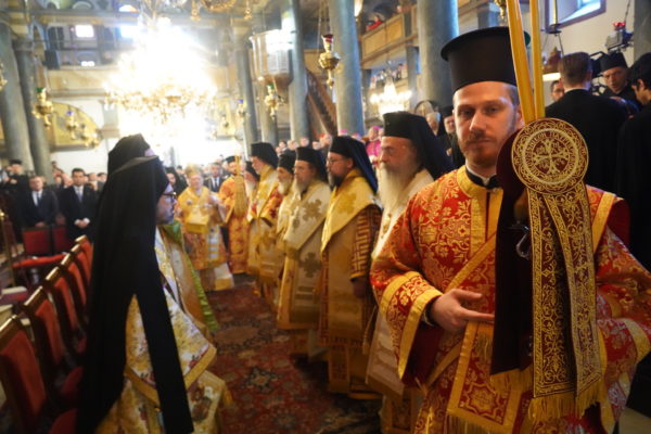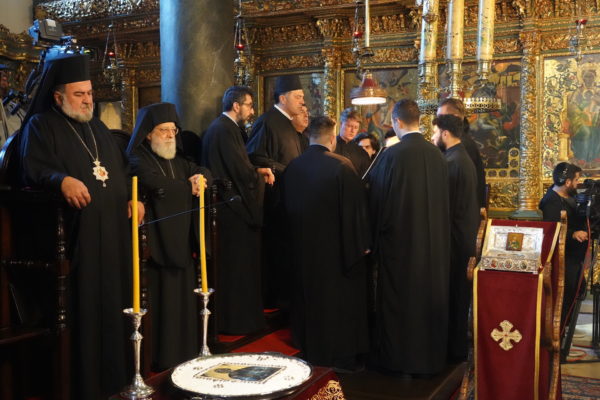 Συμπροσευχήθηκαν οι Αρχιερείς Μητροπολίτες Γέρων Χαλκηδόνος κ. Εμμανουήλ, Γέρων Δέρκων κ. Απόστολος, Γέρων Πριγκηποννήσων κ. Δημήτριος, Ανθηδώνος κ. Νεκτάριος, Επίτροπος του Πανάγιου Τάφου στην Πόλη, Κωνσταντίας και Αμμοχώστου κ. Βασίλειος, εκ προσώπου της Αγιωτάτης Εκκλησίας της Κύπρου, Καναδά κ. Σωτήριος, Δωδώνης κ. Χρυσόστομος, Φιλαδελφείας κ. Μελίτων, Μυριοφύτου και Περιστάσεως κ. Ειρηναίος, Μύρων κ. Χρυσόστομος, Ικονίου κ. Θεόληπτος, Γορτύνης και Αρκαδίας κ. Μακάριος, Ελευθερουπόλεως κ. Χρυσόστομος, Κυδωνίας και Αποκορώνου κ. Δαμασκηνός, Κρήνης κ. Κύριλλος, Ζακύνθου κ. Διονύσιος, Καλλιουπόλεως και Μαδύτου κ. Στέφανος, Σιγκαπούρης κ. Κωνσταντίνος, Αυστρίας κ. Αρσένιος, Κυδωνιών κ. Αθηναγόρας, Πισιδίας κ. Ιώβ, Σηλυβρίας κ. Μάξιμος, Σμύρνης κ. Βαρθολομαίος, Σαράντα Εκκλησιών κ. Ανδρέας, Προύσης κ. Ιωακείμ, και Σελευκείας κ. Θεόδωρος, οι Θεοφιλεστάτοι Επίσκοποι Αλικαρνασσού κ. Αδριανός, Απαμείας κ. Παΐσιος και Αρίστης κ. Μάξιμος, η Υφυπουργός Παιδείας κ. Ζέττα Μακρή, ως εκπρόσωπος της Ελληνικής Κυβερνήσεως, οι πρώην Πρωθυπουργοί της Βουλγαρίας κύριοι Νikolay Denkov και Kyril Petkov, ο Πρέσβυς κ. Κωνσταντίνος Κούτρας, Γενικός Πρόξενος της Ελλάδος στην Πόλη, οι Γενικοί Πρόξενοι της Ουκρανίας κ. Roman Nedilskyi και της Μολδαβίας κ. Sergiu Gurduza, Κληρικοί, Μοναχοί και Μοναχές, εκπρόσωποι χριστιανικών Κοινοτήτων της Πόλεως, ο Ηγούμενος της ΡΚαθολικής Ιεράς Μονής Pannonhalma της Ουγγαρίας Πανοσιολ. κ. Κύριλλος Hortobágyi, με πολυμελή Αντιπροσωπεία, Άρχοντες Οφφικιάλιοι της Μεγάλης του Χριστού Εκκλησίας υπό τον Πρόεδρο της Αδελφότητός τους «Παναγία η Παμμακάριστος», κ. Αθανάσιο Μαρτίνο, Άρχοντα Έξαρχο, καθηγητές και μαθητές Ομογενειακών Σχολείων της Πόλης, και πλήθος πιστών από την Πόλη, και το εξωτερικό.
