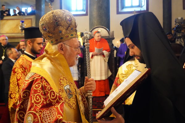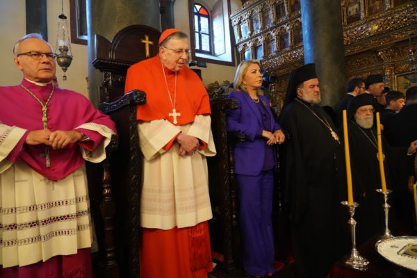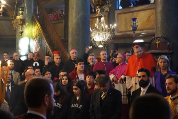 Κατά τη Θεία Λειτουργία παρέστη αντιπροσωπεία της Εκκλησίας της Ρώμης υπό τον Καρδινάλιο Σεβ. κ. Kurt Koch, Πρόεδρο της Επιτροπής (Dicastry) για την Προώθηση της Ενότητος των Χριστιανών.