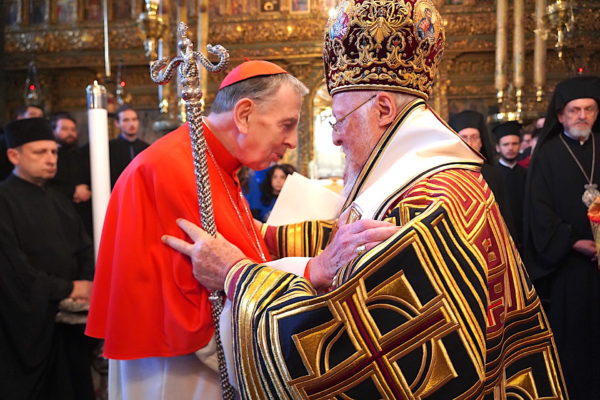 Ο Οικουμενικός Πατριάρχης ανέφερε ότι η εφετεινή χρονιά σφραγίστηκε από δύο σημαντικά γεγονότα για τις σχέσεις των δύο αδελφών Εκκλησιών, Ορθοδόξου και Ρωμαιοκαθολικής, τα οποία αφορούν στο κοινό ενδιαφέρον τους για τη συνοδικότητα και το θέμα του πρωτείου. Το πρώτο, όπως είπε, ήταν η 15η Ολομέλεια της Μεικτής Διεθνούς Επιτροπής επί του Θεολογικού Διαλόγου μεταξύ των δύο Εκκλησιών, η οποία πραγματοποιήθηκε στην Αλεξάνδρεια, τον περασμένο Ιούνιο, και το δεύτερο, η 16η Τακτική Γενική Συνέλευση της Συνόδου των Επισκόπων της Ρωμαιοκαθολικής Εκκλησίας, η οποία συνήλθε στην Ρώμη, τον περασμένο Οκτώβριο. Αφού αναφέρθηκε στο τι συζητήθηκε στα δύο παραπάνω γεγονότα, ο Παναγιώτατος σημείωσε ότι η ενότητα, “την οποίαν επιζητούμεν και διά την οποίαν ειργάσθημεν με ζέσιν περισσότερον από μισόν αιώνα δεν είναι πολυτέλεια” και επεσήμανε τη σημασία και την αξία του ειλικρινούς διαλόγου.