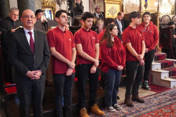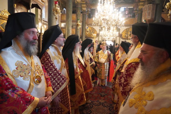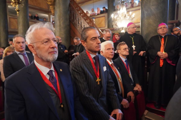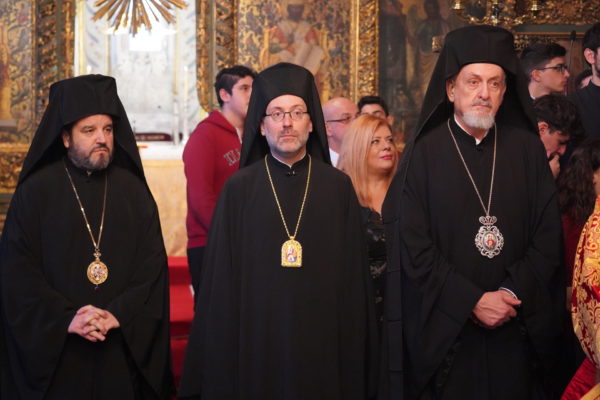 Συμπροσευχήθηκαν οι Σεβ. Αρχιερείς Γέρων Χαλκηδόνος κ. Εμμανουήλ, Δωδώνης κ. Χρυσόστομος, Φιλαδελφείας κ. Μελίτων, Μυριοφύτου και Περιστάσεως κ. Ειρηναίος, Μύρων κ. Χρυσόστομος, Θυατείρων και Μεγάλης Βρεταννίας κ. Νικήτας, Ικονίου κ. Θεόληπτος, Κρήνης κ. Κύριλλος, Κυδωνιών κ. Αθηναγόρας, Σηλυβρίας κ. Μάξιμος, Σμύρνης κ. Βαρθολομαίος, Ίμβρου και Τενέδου κ. Κύριλλος, Σαράντα Εκκλησιών κ. Ανδρέας, και Προύσης κ. Ιωακείμ, οι Θεοφιλ. Επίσκοποι Αλικαρνασσού κ. Αδριανός, Αραβισσού κ. Κασσιανός, Τράλλεων κ. Βενιαμίν, Δαφνουσίας κ. Σμάραγδος, Κομάνων κ. Μιχαήλ, Ξανθουπόλεως κ. Παΐσιος και Σαλώνων κ. Ιγνάτιος, ο Εξοχ. Υφυπουργός Εξωτερικών της Ελλάδος κ. Γεώργιος Κώτσηρας, ως εκπρόσωπος της Ελληνικής Κυβερνήσεως, και οι Εξοχ. Υφυπουργός Παιδείας κ. Ζέττα Μακρή και Πρέσβης κ. Κωνσταντίνος Κούτρας, Γενικός Πρόξενος της Ελλάδος στην Πόλη, ο Εξοχ. Πρέσβης της Ουκρανίας στην Τουρκία κ. Vasyl Bodnar, ο οποίος συνοδευόταν από τον Εντιμ. Γενικό Πρόξενο κ. Roman Nedilskyi, Κληρικοί, Μοναχοί και Μοναχές, εκπρόσωποι χριστιανικών Κοινοτήτων της Πόλεως, ο Ηγούμενος της ΡΚαθολικής Ι. Μονής Pannonhalma της Ουγγαρίας Σεβ. κ. Κύριλλος Hortobágyi, Άρχοντες Οφφικιάλιοι της Μεγάλης του Χριστού Εκκλησίας με επί κεφαλής τον Γενικό Γραμματέα της Αδελφότητός τους “Παναγία η Παμμακάριστος”, Εντιμολ. κ. Κωνσταντίνο Δεληκωσταντή, Άρχοντα Διδάσκαλο του Γένους, καθηγητές και μαθητές Ομογενειακών Σχολείων της Πόλης, και πλήθος πιστών από την Πόλη, την Ελλάδα και την Ουκρανία.