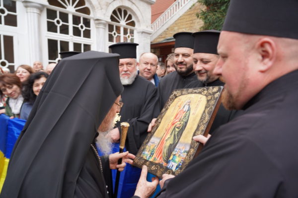 Αμέσως μετά, στην αυλή του Πατριαρχείου ο Παναγιώτατος συνάντησε και ευλόγησε όμιλο Ουκρανών κληρικών και πιστών που ταξίδεψαν από την πολύπαθη πατρίδα τους για να βρίσκονται την ημέρα αυτή στην εορτή του Οικουμενικού Πατριαρχείου.