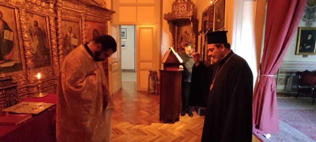 Τελέστηκε την επί τη ιερά μνήμη του Αγίου Αποστόλου Φιλίππου, ο Όρθρος και η Θεία Λειτουργία, στο παρακείμενο παρεκκλήσιο της Παναγίας της Καμαριωτίσσης της Αίθουσας Τελετών της Θεολογικής Σχολής της Χάλκης, χοροστατούντος από του παραθρονίου του Καθηγουμένου, Θεοφιλεστάτου Επισκόπου Αραβισσού κ. Κασσιανού.