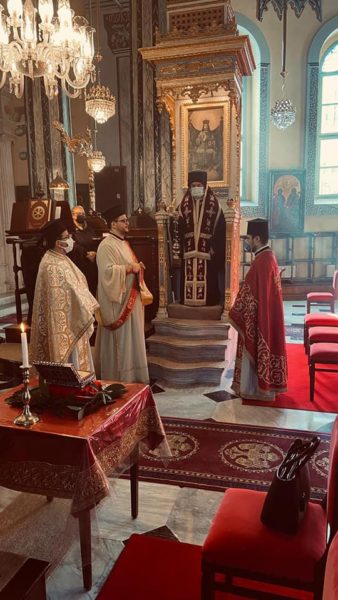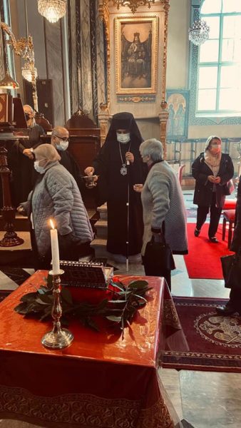 Επί τη μνήμη του Αγίου Ιερομάρτυρος Χαραλάμπους του Θαυματουργού την Τετάρτη 10 Φεβρουαρίου στον Ιερό Μητροπολιτικό Ναό της Αγίας Παρασκευής της Κοινότητος Θεραπειών της Κωνσταντινουπόλεως τελέσθηκε Θεία Λειτουργία, χοροστατούντος του Σεβ. Ποιμενάρχου Μητροπολίτου Γέροντος Δέρκων κ. Αποστόλου.
