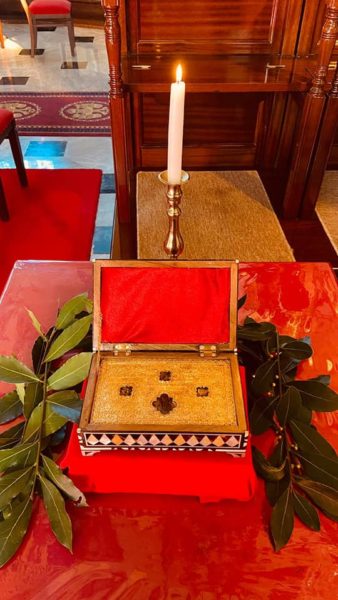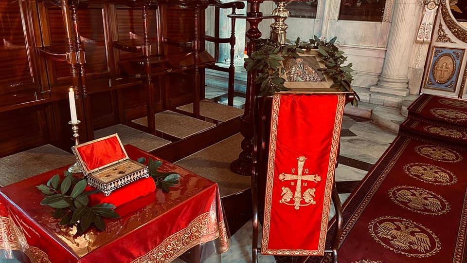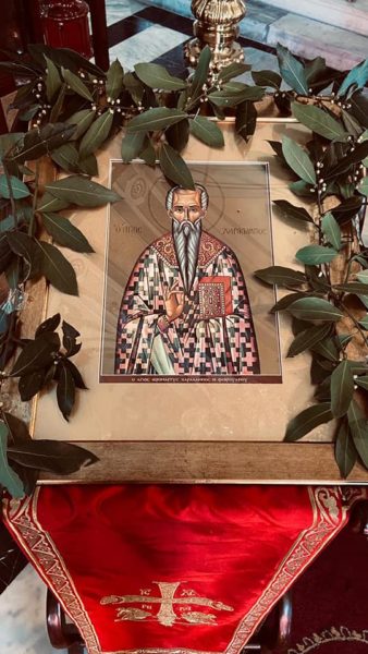 Τεμάχιο Ιερού Λειψάνου του εορταζομένου Αγίου ετέθη στον Σολέα του Ιερού Ναού προς προσκύνησιν των προσελθόντων χριστιανών.