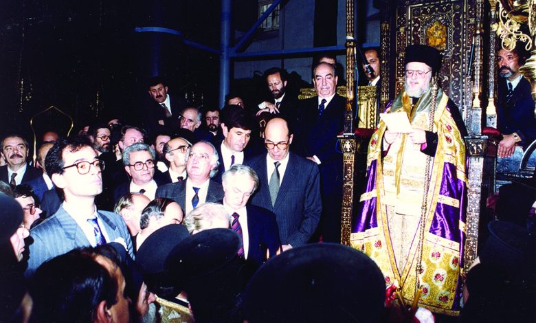 Φωτογραφία από το αρχείο του μακαριστού Νικόλαου Μαγγίνα: Τελετή της ενθρόνισης του Οικουμενικού Πατριάρχη Βαρθολομαίου στις 2 Νοεμβρίου του 1991 στον Πατριαρχικό Ναό του Αγίου Γεωργίου στο Φανάρι. Στο παραθρόνιο διακρίνεται ο τότε πρωθυπουργός της Ελλάδος Κωνσταντίνος Μητσοτάκης.