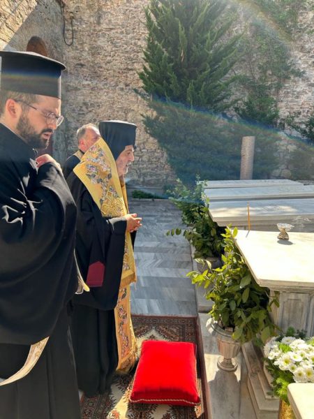 Την Παρασκευή, 13 Οκτωβρίου 2023, επι τη μνήμη του Αγίου Μάρτυρος Βενιαμίν του Διακόνου, ο Πατριαρχικός Επίτροπος Σεβ. Μητροπολίτης Γέρων Δέρκων κ. Απόστολος, συνοδευόμενος από τον Πανοσιολ. Διάκονο κ. Οικουμένιο Αμανατίδη, Κωδικογράφο της Αγίας και Ιεράς Συνόδου, μετέβη στην Ιερά Πατριαρχική και Σταυροπηγιακή Μονή Ζωοδόχου Πηγής Βαλουκλή, όπου τέλεσε Τρισάγιο στον τάφο του αοιδίμου Πατριάρχου Βενιαμίν.