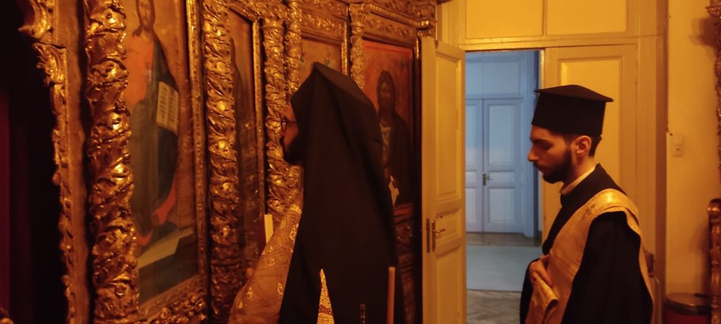 Μετά το πέρας του Εσπερινού ανεγνώσθη νεκρώσιμο τρισάγιο υπέρ αναπαύσεως της ψυχής του μακαριστού Επισκόπου Κλαυδιουπόλεως κυρού Ανδρέου, αποφοίτου της Σχολής, Καθηγητού και Διευθυντού του Λυκειακού Τμήματος αυτής.