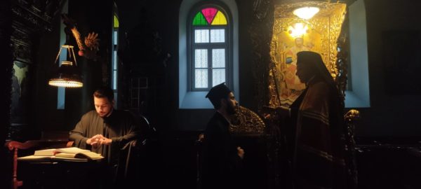 Συμπροσευχόμενος παρέστη κατά την διάρκεια της αγρυπνίας ο Θεοφιλέστατος Επίσκοπος Απολλωνιάδος κ. Ιωακείμ, Βοηθός Επίσκοπος της Ιεράς Μητροπόλεως Βελγίου.