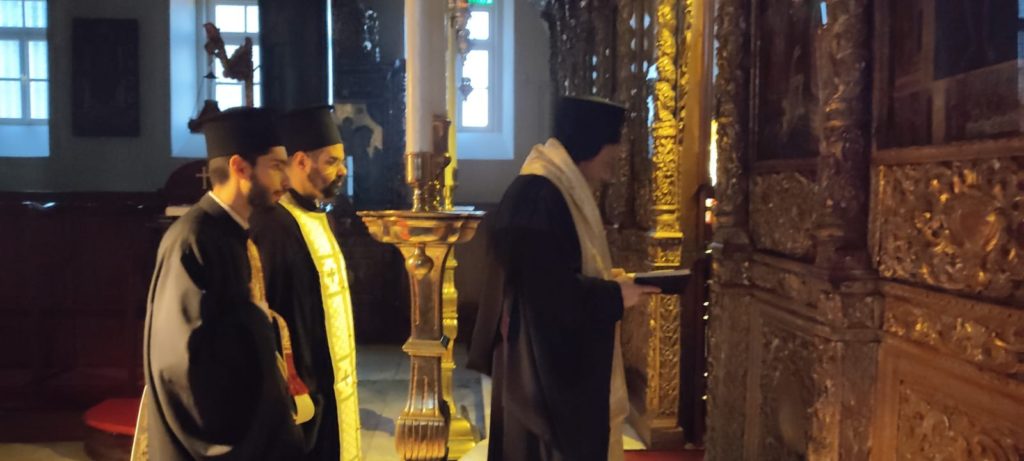 Στο ναΰδριο της Θεολογικής Σχολής της Χάλκης ανεγνώσθη χθες μετά το πέρας της εσπερινής Προηγιασμένης Θείας Λειτουργίας, από τον Καθηγούμενο, Θεοφιλέστατο Επίσκοπο Αραβισσού κ. Κασσιανό, νεκρώσιμο τρισάγιο υπέρ αναπαύσεως της μακαρίας ψυχής του κοιμηθέντος μακαριστού Μητροπολίτου Τρανουπόλεως κυρού Γερμανού.