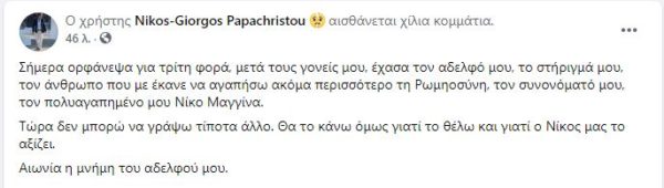 O δημοσιογράφος κ. Νίκος Παπαχρήστου έκανε γνωστή την είδηση με ανάρτησή του σε Μέσα Κοινωνικής Δικτύωσης: