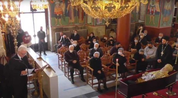 Σε κλίμα συγκίνησης τελέστηκε σήμερα, Παρασκευή 15 Απριλίου 2022, η Εξόδιος Ακολουθία του μακαριστού Μητροπολίτη Ηλιουπόλεως και Θειρών κυρού Χρυσοστόμου στον Ιερό Ναό Κοιμήσεως της Θεοτόκου Ηλιουπόλεως Αττικής παρουσία πλήθους κόσμου της ενορίας αλλά και αντιπροσωπειών από την Αγγλία.
