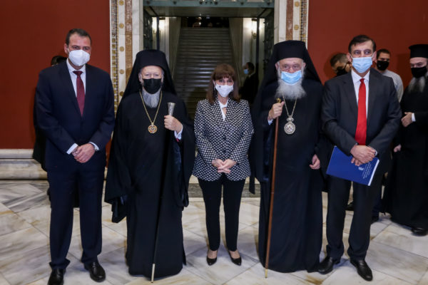 Παρουσία της Προέδρου της Δημοκρατίας κ. Κατερίνας Σακελλαροπούλου και του Μακαριωτάτου Αρχιεπισκόπου Αθηνών και πάσης Ελλάδος κ.κ. Ιερωνύμου πραγματοποιήθηκε το απόγευμα της Τρίτης 23 Νοεμβρίου 2021 η τελετή επίδοσης Τιμητικού Τόμου στον Παναγιώτατο Οικουμενικό Πατριάρχη κ.κ. Βαρθολομαίο, από την Θεολογική Σχολή Αθηνών, με την ευκαιρία της συμπλήρωσης της τριαντακονταετούς ευκλεούς Πατριαρχείας του.