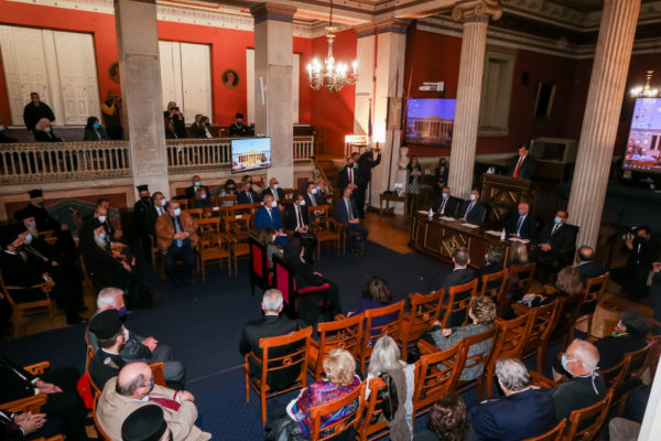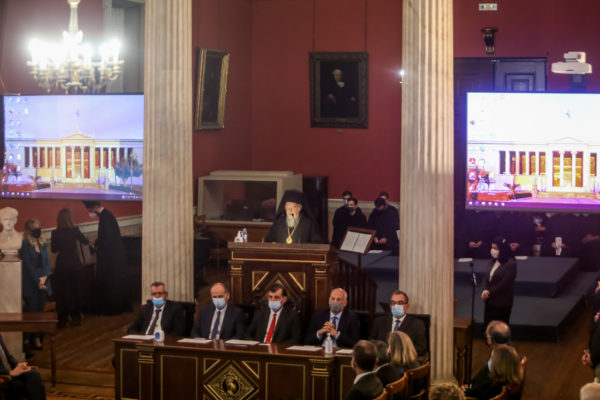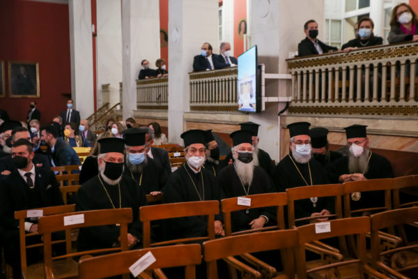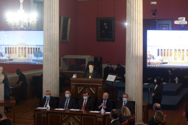 Η εκδήλωση πραγματοποιήθηκε στην αίθουσα τελετών του Πανεπιστήμιου και παρέστησαν, επίσης, Αρχιερείς της Εκκλησίας της Ελλάδος και του Οικουμενικού Πατριαρχείου, υπουργοί, πολιτικοί, ακαδημαϊκοί, κλήρος και λαός.