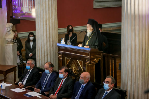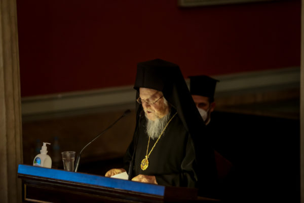 Ἐν χαρᾷ καί ἀγαλλιάσει, τετιμημένοι διά τῆς ὑμετέρας πρόφρονος παρουσίας, δοξάζοντες τόν ἀεί ἐπιδαψιλεύοντα εἰς τό ταπεινόν ἡμῶν πρόσωπον πλούσια τά δωρήματα Αὐτοῦ Θεόν τῶν πατέρων ἡμῶν, εὐχαριστοῦμεν μυχόθεν τήν γεραράν Θεολογικήν Σχολήν τοῦ Ἐθνικοῦ καί Καποδιστριακοῦ Πανεπιστημίου Ἀθηνῶν διά τήν ἀφιέρωσιν τοῦ τιμητικοῦ τούτου Τόμου εἰς τήν ἡμῶν Μετριότητα, ἐπί τῇ συμπληρώσει τριακονταετίας ἀπό τῆς ἐκλογῆς ἡμῶν εἰς τόν Ἀποστολικόν καί Πατριαρχικόν Οἰκουμενικόν Θρόνον τῆς Κωνσταντινουπολίτιδος Ἐκκλησίας, πάντας τούς συμβαλόντας διά τῆς γραφίδος των εἰς τήν κατάρτισίν του, τούς ἀναλαβόντας τήν ἐπιμέλειαν καί τήν ἔκδοσιν, καί τό Πανεπιστήμιον Ἀθηνῶν, ἐν τῷ προσώπῳ τοῦ Ἐλλογιμωτάτου Πρυτάνεως αὐτοῦ, διά τήν ὀργάνωσιν τῆς παρούσης ἐκδηλώσεως. Καί δηλοῦμεν ὅτι ἡ τιμή πρός ἡμᾶς διαβαίνει ἐπί τό Οἰκουμενικόν Πατριαρχεῖον, ἡ ζωή τοῦ ὁποίου εἶναι συνδυασμός ἀμετακινήτου πιστότητος εἰς τήν Παράδοσιν τῶν Ἀποστόλων καί τῶν Πατέρων, μέ τήν ἀνοικτοσύνην πρός τήν ἱστορίαν καί τόν κόσμον καί τήν εὐαισθησίαν διά τόν ἄνθρωπον καί τάς περιπετείας τῆς ἐλευθερίας του.