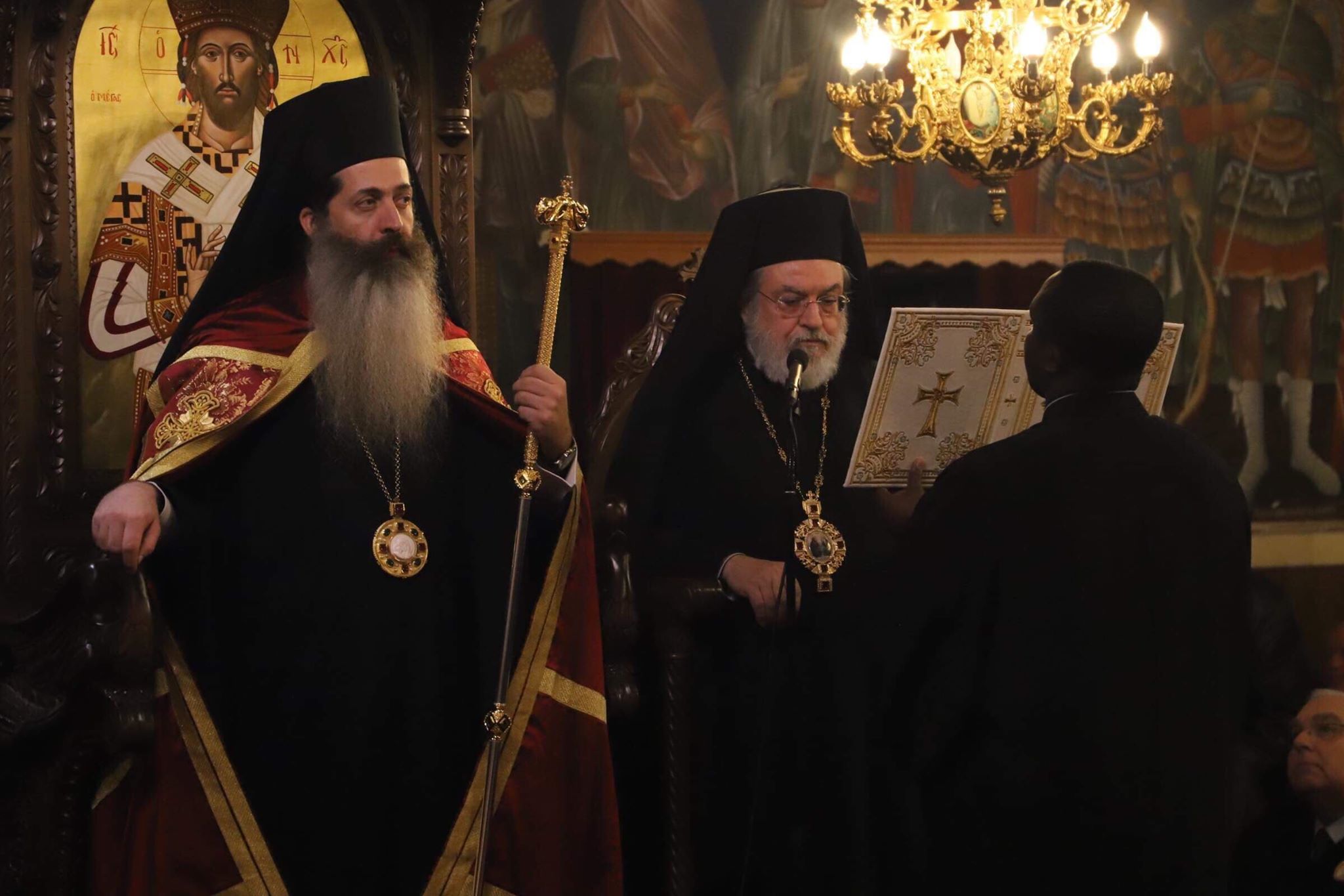 Σε κλίμα ιδιαίτερης κατάνυξης και θρησκευτικής λαμπρότητας τελέσθηκε σήμερα το απόγευμα στον Ι. Ν. Αγ. Αθανασίου στην Κυψέλη, μετόχι του Πατριαρχείου Αλεξανδρείας και πάσης Αφρικής, ο μέγας πανηγυρικός εσπερινός με αφορμή την αυριανή ημέρα, κατα την οποία η Εκκλησία τιμά τη μνήμη του Αγίου Αθανασίου. Στον μεγάλο εσπερινό χοροστάτησε ο Επίσκοπος Θεσπιών κ. Συμεών, Πρωτοσύγκελλος της Ιεράς Αρχιεπισκοπής Αθηνών, ενώ συγχοροστάτησαν οι Μητροπολίτες Γουινέας κ. Γεώργιος, εκπρόσωπος του Πατρίαρχη Αλεξανδρείας κ. Θεοδώρου στην Αθήνα, Ηλιουπόλεως κ. Θεόδωρος και Πτολεμαιδος κ. Εμμανουήλ. Παρέστησαν, ο πρ. Της ΚΕΔΕ κ. Γιώργος Πατούλης, εκπρόσωποι των τοπικών αρχών, κλήρος και λαός. Τον Θείο Λόγο κήρυξε ο Επίσκοπος Θεσπιών, ο οποίος μεταξύ άλλων αναφέρθηκε στο πρόσωπο, στην ζωή και στο έργο του Αγίου Αθανασίου, ενώ σε άλλο σημείο κάλεσε τους νέους να μην αφήνουν τις ευκαιρίες που τους προσφέρονται να πηγαίνουν χαμένες. Ευχήθηκε, επίσης, να βρεθούμε άξιοι των περιστάσεων της εποχής και εξέφρασε την ευγνωμοσύνη του προς το πρόσωπο του Πατριάρχη Αλεξανδρείας. Αμέσως μετά την ακολουθία του εσπερινού ο Μητροπολίτης Γουινέας ευχαρίστησε τον Επίσκοπο Θεσπιών, αλλά κι όλους τους παρευρισκόμενους για την παρουσία τους και αναφέρθηκε στο πρόσωπο του Αρχιεπισκόπου Αθηνών και πάσης Ελλαδος κ. Ιερωνύμου, που, όπως είπε, αγαπά όλο τον κόσμο χωρίς διακρίσεις. «Άλλωστε η Ορθοδοξία δεν εχει σύνορα. Καλούμαστε να αγαπάμε χωρίς διακρίσεις» τόνισε ο Μητροπολίτης Γουινέας. Μιλώντας για την ξενοφοβία και τον ρατσισμό τόνισε πως μπορούμε να ξεπεράσουμε αυτες τις έννοιες. Ευχαρίστησε, επίσης, την Εκκλησία της Ελλαδος για την στήριξή της στο πολυσχιδές και σημαντικό πνευματικό και κοινωνικό έργο που επιτελείται στο Πατριαρχείο Αλεξανδρειας. «Τα χέρια της ιεραποστολής στην Αφρική, εξάλλου, ειναι ελληνικά» πρόσθεσε ο Μητροπολίτης Γουινεας. Κατόπιν, ευλόγησαν την Βασιλόπιτα με αφορμή την έναρξη της νέας ημερολογιακής χρονιάς.