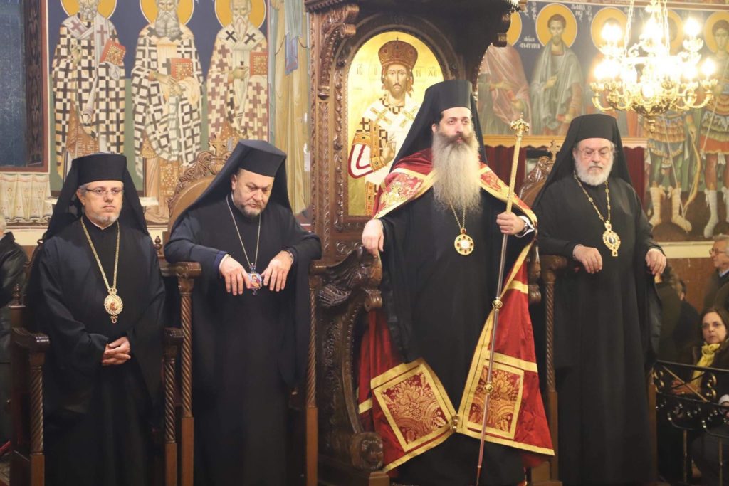 Σε κλίμα ιδιαίτερης κατάνυξης και θρησκευτικής λαμπρότητας τελέσθηκε σήμερα το απόγευμα στον Ι. Ν. Αγ. Αθανασίου στην Κυψέλη, μετόχι του Πατριαρχείου Αλεξανδρείας και πάσης Αφρικής, ο μέγας πανηγυρικός εσπερινός με αφορμή την αυριανή ημέρα, κατα την οποία η Εκκλησία τιμά τη μνήμη του Αγίου Αθανασίου. Στον μεγάλο εσπερινό χοροστάτησε ο Επίσκοπος Θεσπιών κ. Συμεών, Πρωτοσύγκελλος της Ιεράς Αρχιεπισκοπής Αθηνών, ενώ συγχοροστάτησαν οι Μητροπολίτες Γουινέας κ. Γεώργιος, εκπρόσωπος του Πατρίαρχη Αλεξανδρείας κ. Θεοδώρου στην Αθήνα, Ηλιουπόλεως κ. Θεόδωρος και Πτολεμαιδος κ. Εμμανουήλ. Παρέστησαν, ο πρ. Της ΚΕΔΕ κ. Γιώργος Πατούλης, εκπρόσωποι των τοπικών αρχών, κλήρος και λαός. Τον Θείο Λόγο κήρυξε ο Επίσκοπος Θεσπιών, ο οποίος μεταξύ άλλων αναφέρθηκε στο πρόσωπο, στην ζωή και στο έργο του Αγίου Αθανασίου, ενώ σε άλλο σημείο κάλεσε τους νέους να μην αφήνουν τις ευκαιρίες που τους προσφέρονται να πηγαίνουν χαμένες. Ευχήθηκε, επίσης, να βρεθούμε άξιοι των περιστάσεων της εποχής και εξέφρασε την ευγνωμοσύνη του προς το πρόσωπο του Πατριάρχη Αλεξανδρείας. Αμέσως μετά την ακολουθία του εσπερινού ο Μητροπολίτης Γουινέας ευχαρίστησε τον Επίσκοπο Θεσπιών, αλλά κι όλους τους παρευρισκόμενους για την παρουσία τους και αναφέρθηκε στο πρόσωπο του Αρχιεπισκόπου Αθηνών και πάσης Ελλαδος κ. Ιερωνύμου, που, όπως είπε, αγαπά όλο τον κόσμο χωρίς διακρίσεις. «Άλλωστε η Ορθοδοξία δεν εχει σύνορα. Καλούμαστε να αγαπάμε χωρίς διακρίσεις» τόνισε ο Μητροπολίτης Γουινέας. Μιλώντας για την ξενοφοβία και τον ρατσισμό τόνισε πως μπορούμε να ξεπεράσουμε αυτες τις έννοιες. Ευχαρίστησε, επίσης, την Εκκλησία της Ελλαδος για την στήριξή της στο πολυσχιδές και σημαντικό πνευματικό και κοινωνικό έργο που επιτελείται στο Πατριαρχείο Αλεξανδρειας. «Τα χέρια της ιεραποστολής στην Αφρική, εξάλλου, ειναι ελληνικά» πρόσθεσε ο Μητροπολίτης Γουινεας. Κατόπιν, ευλόγησαν την Βασιλόπιτα με αφορμή την έναρξη της νέας ημερολογιακής χρονιάς.