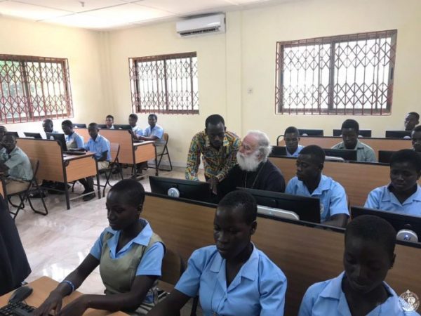 Ο Μακαριώτατος Πατριάρχης Αλεξανδρείας στη νέα Σχολή Υπολογιστών στο Λάρτε, δωρεά της Αδελφότητάς μας