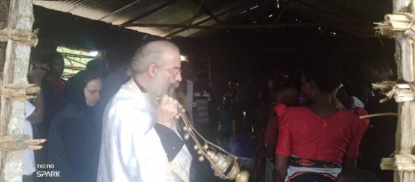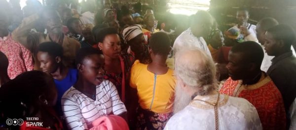 Πριν ένα μήνα είχαν βαπτισθεί 32 ακόμη νεοφώτιστοι μετά από ιεραποστολή του π. Μάρκου. Μέσα σε ένα μήνα έφτιαξαν την λασποκαλύβα-Ναό και τον σκέπασαν με λαμαρίνες με την βοήθεια της Επισκοπής.