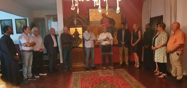 Κατά την διάρκεια της επίσκεψης του Καθηγητού του Ιονίου Πανεπιστημίου κ. Ιωάννη Καρρά στην επισκοπική κατοικία της Μητροπόλεως πραγματοποιήθηκε συνάντηση της ηγεσίας της Ελληνικής κοινότητας στη Λουσάκα με την παρουσία του Πρόεδρου του Ιταλικού πολιτιστικού Κέντρου στην Ζάμπια κ. Φράγκο Νουλη.