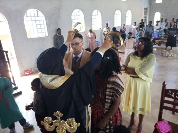 Ο Σεβ. Μητροπολίτης Γέρων Ναϊρόμπι, Yπέρτιμος και Έξαρχος Κένυας κ. Μακάριος, μετά τη Θεία Λειτουργία της Κυριακής 27ης Σεπτεμβρίου, προεξήρχε του Μυστηρίου του Γάμου των Ρωμανού και Άννας. “Έχετε λάβει τις ευλογίες της εκκλησίας. Σας εύχομαι τα καλύτερα, γεμάτοι χαρά και ευτυχία” αναφέρει σε επίκαιρη ανάρτησή του.