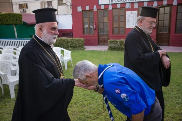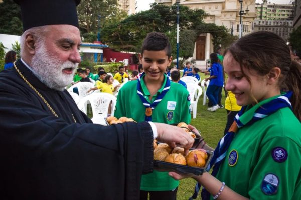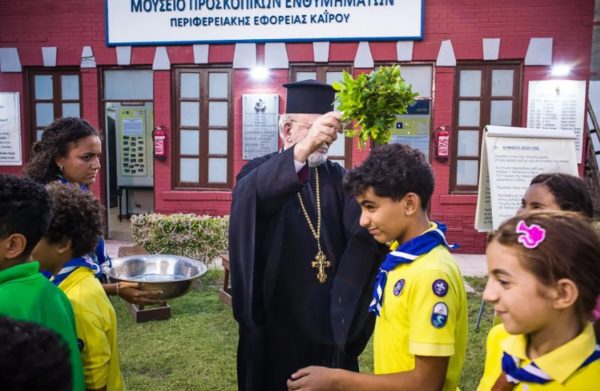Ο Θεοφιλέστατος Επίσκοπος κ. Ιππώνος Στέφανος και ο Πανοσιολογιώτατος Αρχιμανδρίτης Ιωακείμ τέλεσαν τον Αγιασμό για την νέα Προσκοπική περίοδο, ενώ συμπροσευχούμενος παρέστη και ο Σεβασμιώτατος Μητροπολίτης Μέμφιδος και Πατριαρχικός Επίτροπος Καΐρου κ. Νικόδημος , ο οποίος ευχήθηκε από καρδιάς στους Προσκόπους τα καλύτερα για την νέα περίοδο που ξεκίνησε και τους ευχαρίστησε γιατί πάντα συνεπικουρούν και τιμούν με την παρουσία τους τις Ακολουθίες των Εκκλησιών στο Κάιρο. Μετέφερε επίσης σε όλους την αγάπη του Μακαριώτατου Πατριάρχη Αλεξανδρείας κ.κ. Θεόδωρου B’.