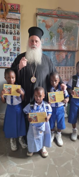 Παρόμοιους λόγους απηύθυνε ο Μητροπολίτης και στο σχολείο της ενορίας των Αρχαγγέλων. Μετέφερε σε όλους τις ευχές του Μακαριωτάτου Πάπα και Πατριάρχου Αλεξανδρείας και πάσης Αφρικής κ.κ Θεοδώρου Β και προσέφερε σε όλους εικόνα ως ενθύμιο τον Χριστό που ευλογεί τα παιδιά.