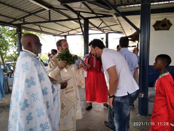 Στην Θεία Λειτουργία που τελέστηκε στην πόλη Ντουάλα προεξήρχε την Κυριακή Μετά τα Φώτα, 10 Ιανουαρίου, ο Σεβ. Μητροπολίτης Καμερούν κ. Γρηγόριος. Συλλειτούργησαν ο Αρχιμανδρίτης π. Δαβίδ Τσαπάρας και ο π. Δημήτριος Τενέ.