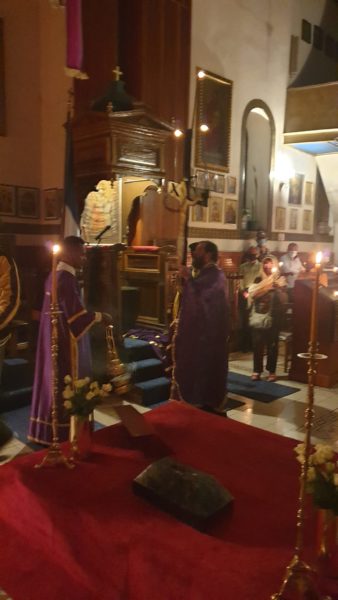 Προεξάρχοντος του Σεβασμ. Μητροπολίτη Αξώμης κ. Δανιήλ, του Πανοσιολ. Μ. Αρχιμ. κ. Χρυσοστόμου Μπαρμπέρη, με τη συμμετοχή της Ελληνικής Πρεσβείας, της Ελληνικής Κοινότητας, της Ελληνικής Λέσχης, πλήθους πιστών Ορθοδόξων Παροίκων, Ελλήνων, Αιθιόπων, Ρώσων, Ουκρανών, Συρίων και λοιπών Αφρικανών, εορτάσθηκαν με ευλάβεια και κατάνυξη τα Άγια Πάθη και η Πρώτη Ανάσταση του Θεανθρώπου Χριστού.