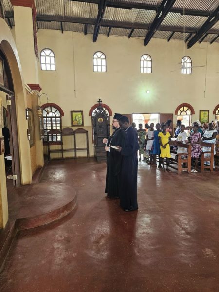 Κατά το ταξίδι του, ο Σεβασμ. κ. Δανιήλ πραγματοποίησε στάση στην Ενορία του Αγίου Ιωάννου του Θεολόγου, στην περιοχή Agona Abodom, όπου προσκύνησε στον Ιερό Ναό.