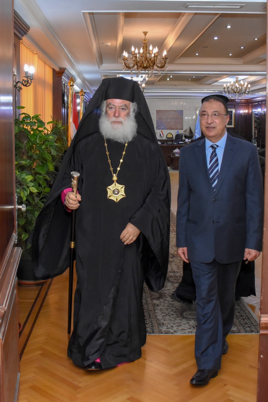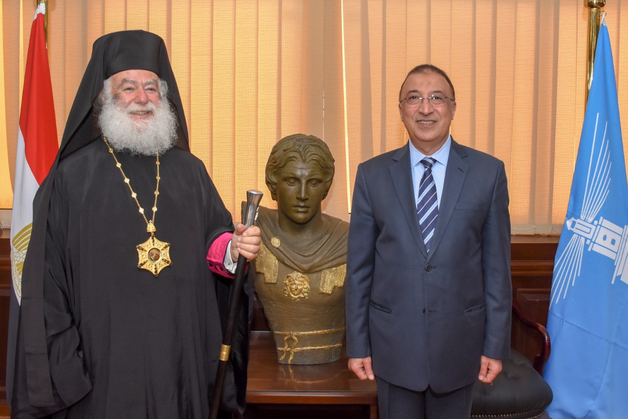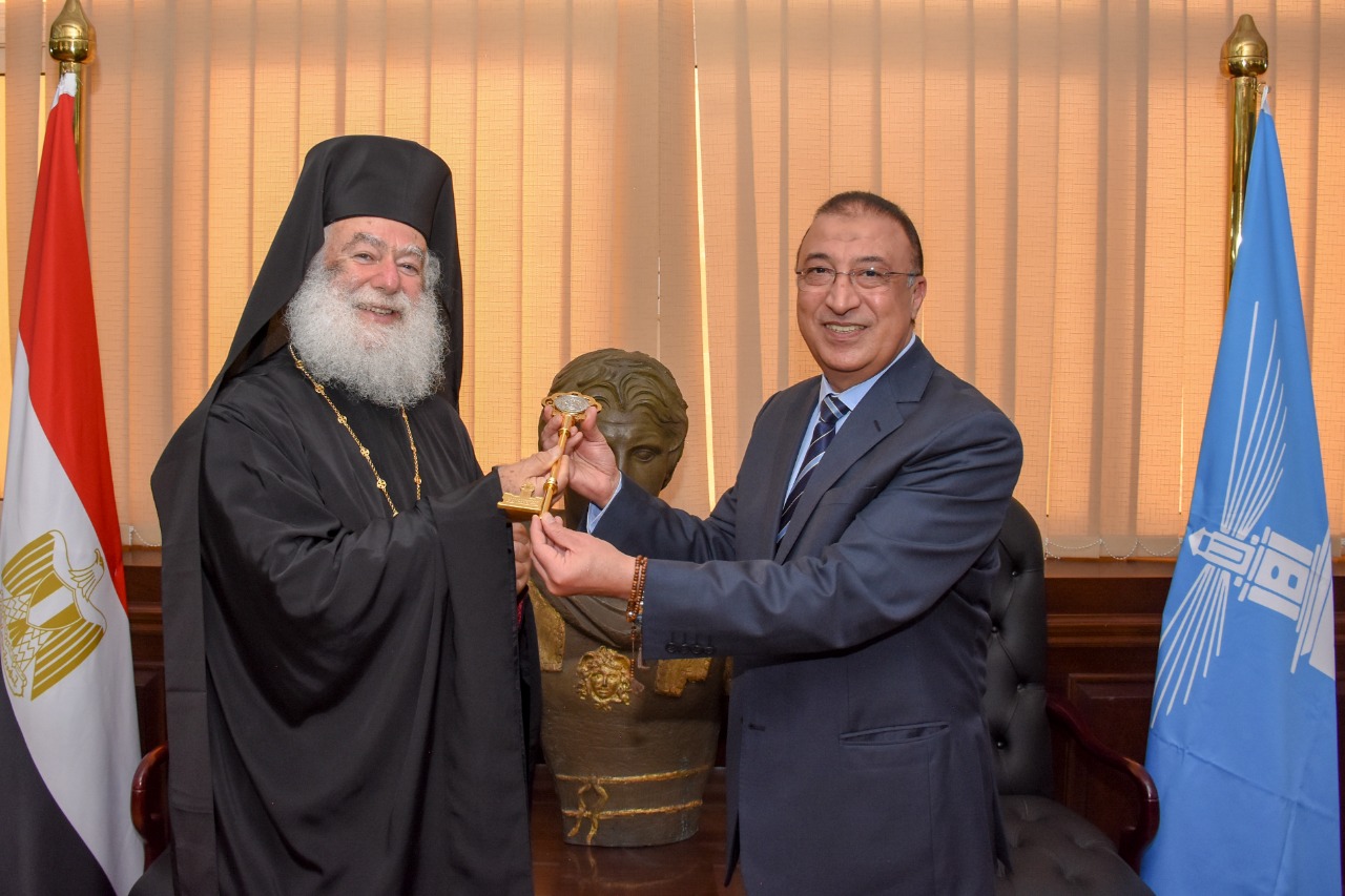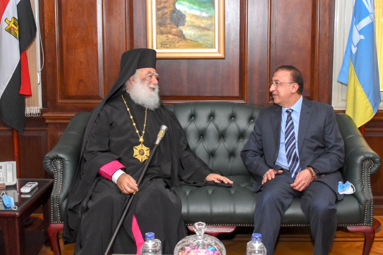 Ο Κυβερνήτης κ. Αλ Σερίφ, εκφράζοντας τον σεβασμό και την εκτίμησή του προς τον Πατριάρχη Αλεξανδρείας, αναφέρθηκε με θαυμασμό στην πολυετή διακονία του Μακαριωτάτου στην Πόλη της Αλεξάνδρειας ο οποίος Ηγείται το ελληνορθόδοξο Πατριαρχείο Αλεξανδρείας και πάσης Αφρικής, τονίζοντας χαρακτηριστικά πως, η εμβληματική πόλη της Αλεξάνδρειας είναι εκ συστάσεώς της μια ελληνική Πόλη, όπου διατηρεί εδώ και 2.000 χρόνια το ιστορικό Πατριαρχείο την Έδρα του. Δήλωσε επίσης, πως θα βρίσκεται πάντοτε στο πλευρό του Πατριαρχείου Αλεξανδρείας.