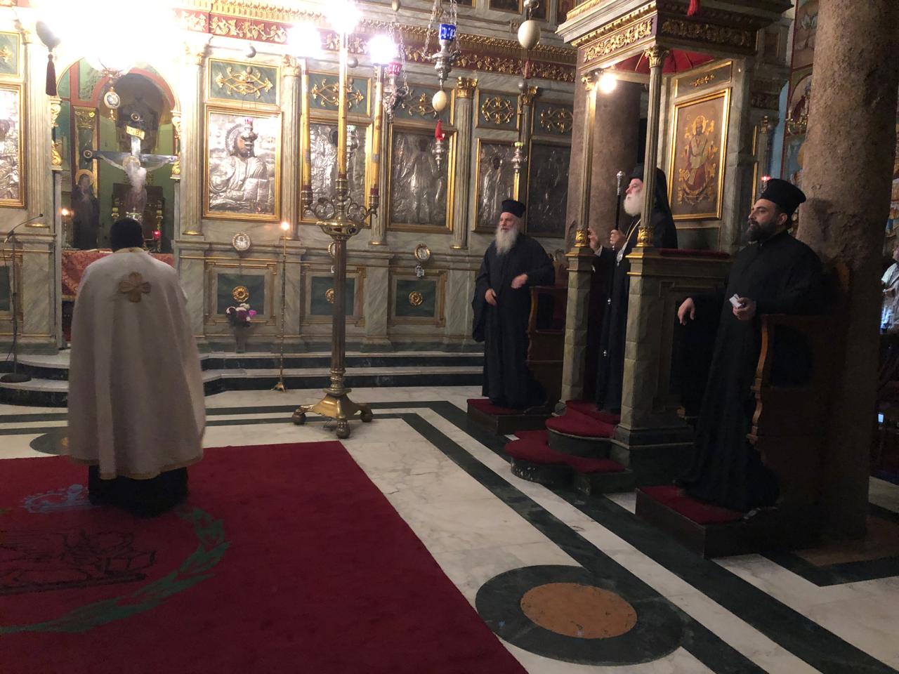 Τον Μακαριώτατο πλαισίωσαν ο Πανιερώτατος Μητροπολίτης Ταμιάθεως κ. Γερμανός, Προϊστάμενος της Ιεράς Μονής και ο Θεοφιλέστατος Επίσκοπος Μαρεώτιδος κ. Δαμασκηνός, Πατριαρχικός Επίτροπος Αλεξανδρείας.