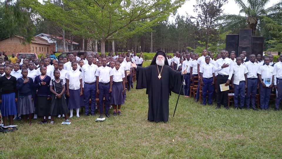Η τρίτη ημέρα της παρουσίας της Α.Θ.Μ. στην Μπουκόμπα ολοκληρώθηκε με την επίσκεψή του στο Γυμνάσιο «ΑΓΙΟΣ ΣΩΣΘΕΝΗΣ», όπου τον περίμεναν 200 και πλέον μαθητές και τον υποδέχθηκαν με χαρά και αγαλλίαση. Ο Πατριάρχης είχε την ευκαιρία να συνομιλήσει με τους μαθητές, στους οποίους ευχήθηκε να έχουν πρόοδο στα μαθήματα τους, να είναι επιμελείς για να καταφέρουν να ακολουθήσουν το τρένο της ζωής και τους διαβεβαίωσε πως πάντοτε η Ορθόδοξη Εκκλησία και ιδιαίτερα ο Πνευματικός Πατέρας και Πατριάρχης τους Θεόδωρος θα είναι πάντοτε στο πλευρό τους.