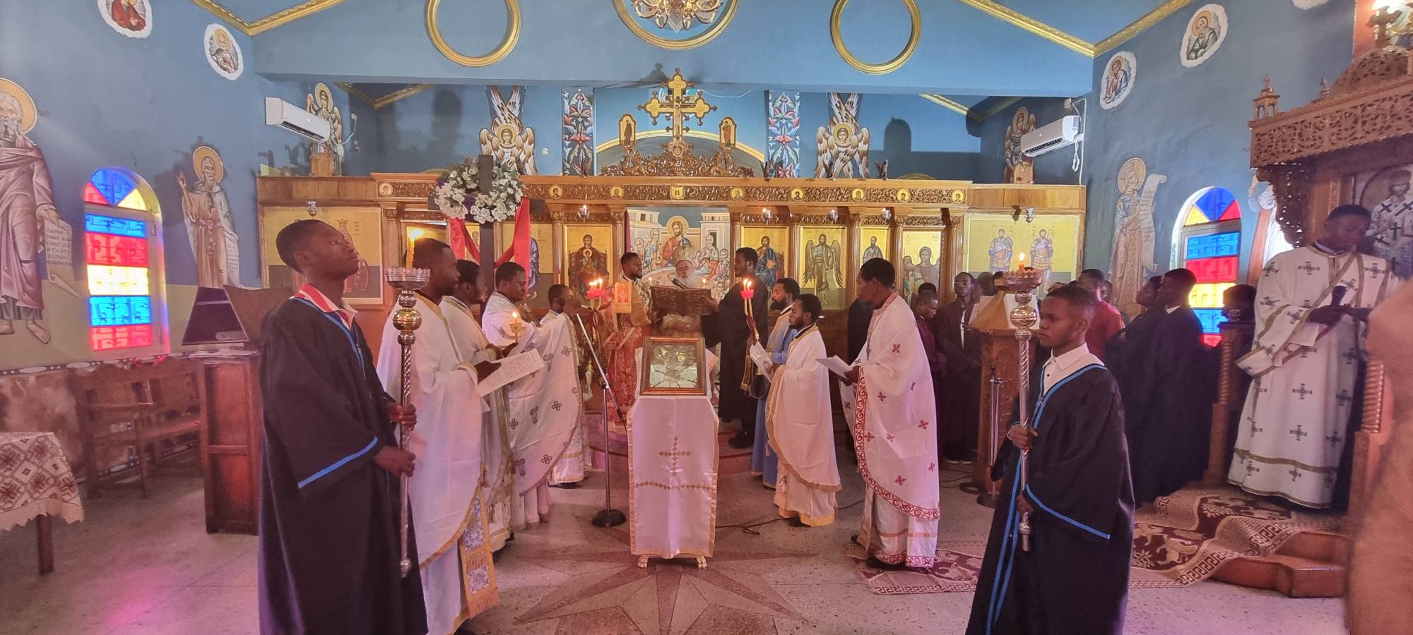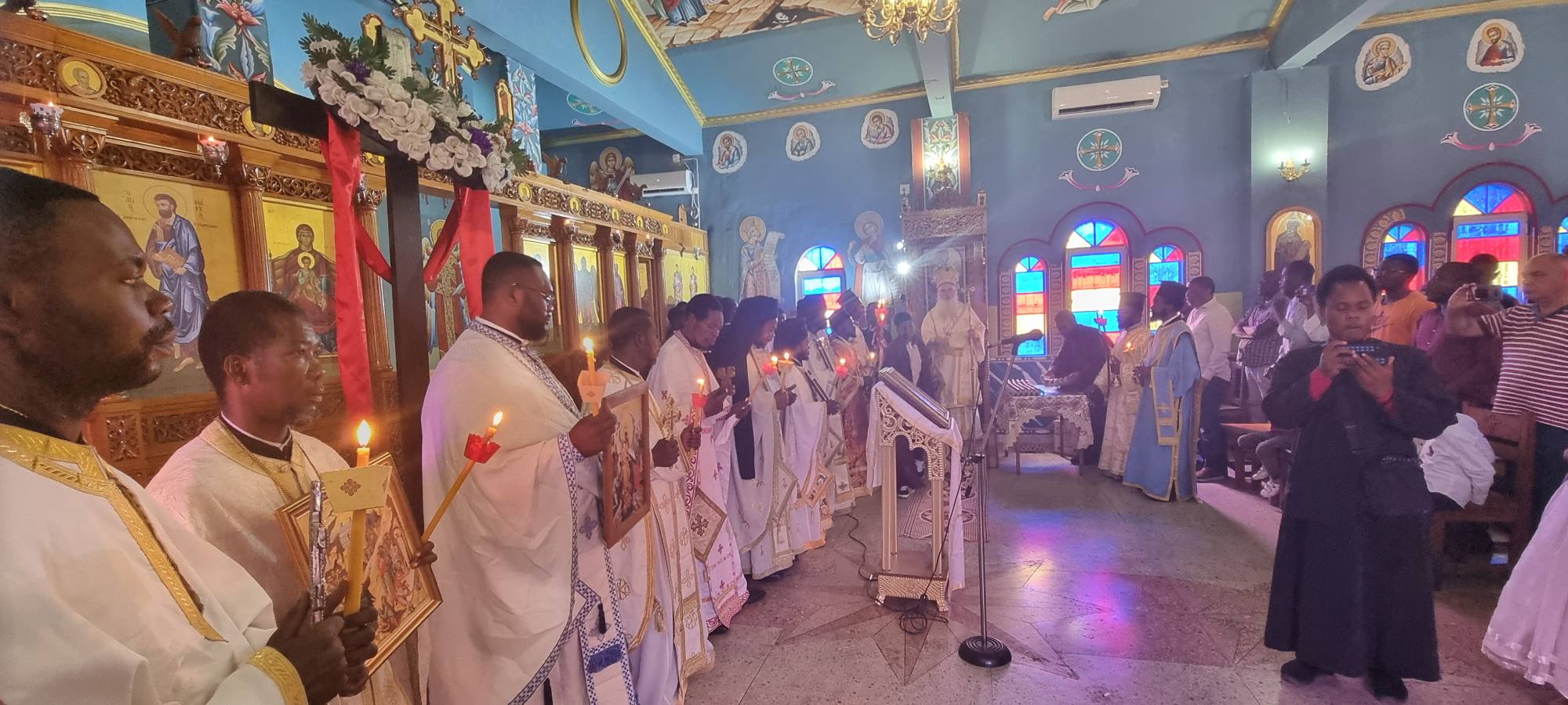 Το πρωί της Κυριακής τελέσθηκε ο εσπερινός της αγάπης στον Ιερό Καθεδρικό Ναό του Αγίου Μάρκου χοροστατούντος του Σεβασμιωτάτου Μητροπολίτου Κινσάσας κ Θεοδοσίου, του Πρωτοσυγκέλλου Αρχιμ. Γερασίμου και άλλων κληρικών και λαϊκών.