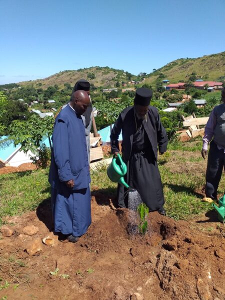 Στο Γυναικείο Μοναστήρι της Αγίας Αικατερίνης kiyindi στην Ουγκάντα βρέθηκε χθες ο Θεοφιλέστατος Επίσκοπος Μπουρούντι-Ρουάντα κ. Ιννοκέντιος με τη συνοδεία του. Εκεί τους υποδέχθηκε εγκάρδια η ηγουμένη Θαβωρία Abbes, η οποία τους ξενάγησε στο καλαίσθητο μοναστήρι στην καρδιά της Αφρικής. Στη συνέχεια ο Επίσκοπος, αφού πρώτα τέλεσε τη θεία λειτουργία, έδωσε το καλό παράδειγμα παίρνοντας γεωργικά εργαλεία και ασχολήθηκε με χειρωνακτικές εργασίες στον περιβάλλοντα χώρο του μοναστηριού μαζί με τους συνεργάτες του.
