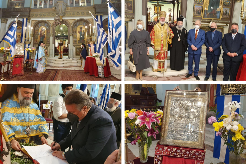 Δέος και συγκίνηση ακολούθησε όταν ο Μητροπολίτης Μέμφιδος Νικόδημος, ο Πρέσβης της Ελλάδος κ. Νικόλαος Γαριλίδης, ο Πρέσβης της Κύπρου κ. Όμηρος Μαυρομάτης, η Γενική Πρόξενος της Ελλάδας στο Κάιρο κ. Μαρία Ζήση και ο Πρόεδρος της Ελληνικής Κοινότητας Καΐρου κ. Χρήστος Καβαλής, υπέγραψαν το Ευαγγέλιο, εις μνήμην των εορτασμών για τα 200 χρόνια από την Επανάσταση του 1821 που έγιναν στο Κάιρο.