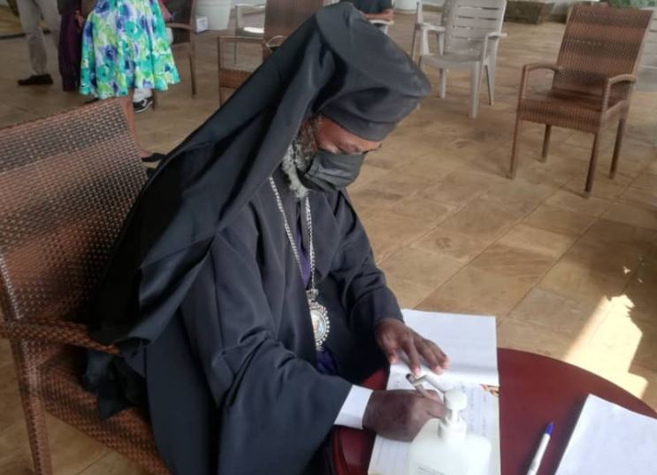 Στη συνέχεια ο Μητροπολίτης κ. Ιερώνυμος υπέγραψε στο βιβλίο συλλυπητηρίων εκφράζοντας με αυτό τον τρόπο την οδύνη όλης της Ορθόδοξης κοινότητας της Ουγκάντας.