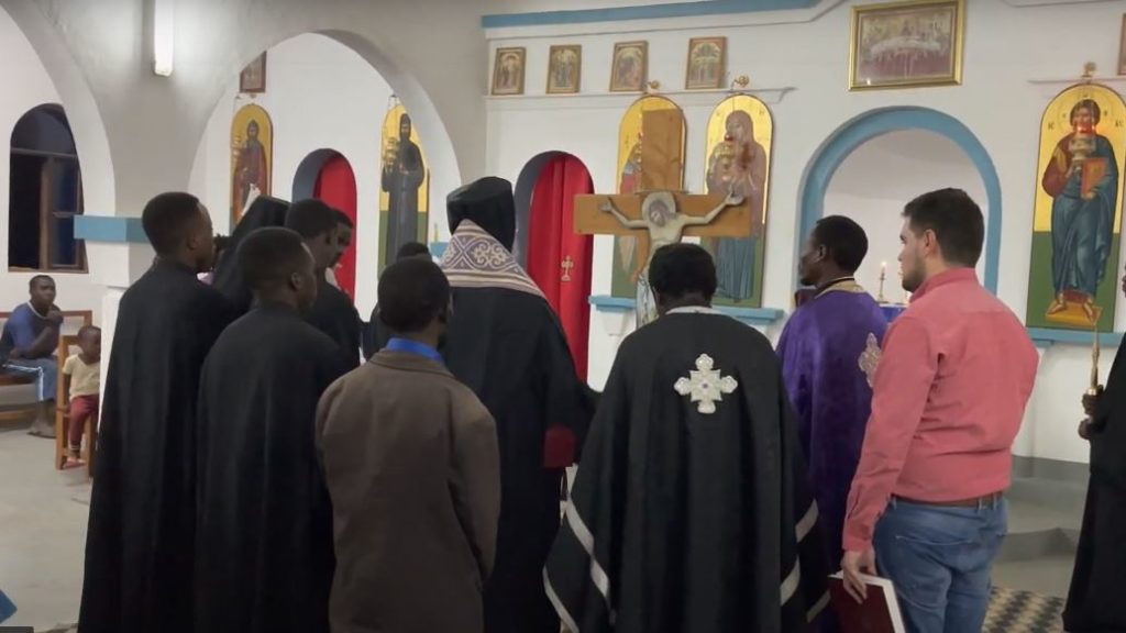 Ιδιαίτερα συγκινητικές είναι στιγμές που μας έρχονται από τις εσχατιές της Αφρικής. Εκεί που ο Χριστός μας σταυρώνεται καθημερινά στο πρόσωπο των εμπερίστατων αδελφών μας. Ο Θεοφιλέστατος Επίσκοπος Αρούσας και Κεντρικής Τανζανίας κ. Αγαθόνικος ψάλλει μαζί με τους αδελφούς μας ιθαγενείς το «Σήμερον κρεμᾶται ἐπὶ ξύλου» στο Ιεραποστολικό Κέντρο Ιρίγκας.