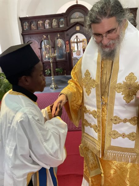 Την Κυριακή 13 Αυγούστου 2023 τελέστηκε Αρχιερατική Θεία Λειτουργία στον Ιερό Ναό Αγίου Ιωάννου του Θεολόγου στο χωριό Ιμπόγκο, όπου ο Θεοφιλέστατος Επίσκοπος κ. Αγαθόνικος προέβη στην εις Πρεσβύτερον χειροτονία του Διακόνου Ζακχαίου, τον όποιον μετονόμασε Θεολόγο. Πρόκειται για έναν ευσεβή νέο κληρικό, ο οποίος για πολλά χρόνια διακονούσε ως αναγνώστης και κατηχητής στην ενορία του Ιμπόγκο αλλά και σε κοντινά χωριά. Κατά το διάστημα που υπήρξε διάκονος, η παραμονή του στο Ιεραποστολικό Κέντρο του Κινταμάλι και η συμμετοχή του στις Ιερές Ακολουθίες, την καθημερινή Θεία Λειτουργία και στις ποικίλες δράσεις που πραγματοποιούνται εκεί, αποτελούν πολύτιμα εφόδια για μια θεάρεστη ιερατική διακονία.
