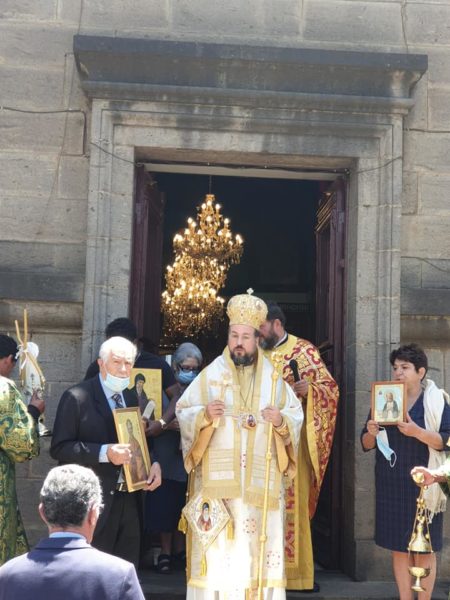 Επακολούθησε η λιτάνευση των ιερών Εικόνων πέριξ του Ιερού Ναού, με τους πιστούς να κρατούν τις Ιερές Εικόνες στα χέρια τους, στο τέλος της οποίας ο Σεβασμιώτατος ανέγνωσε κατά το έθος, το Συνοδικό της Ορθοδοξίας.