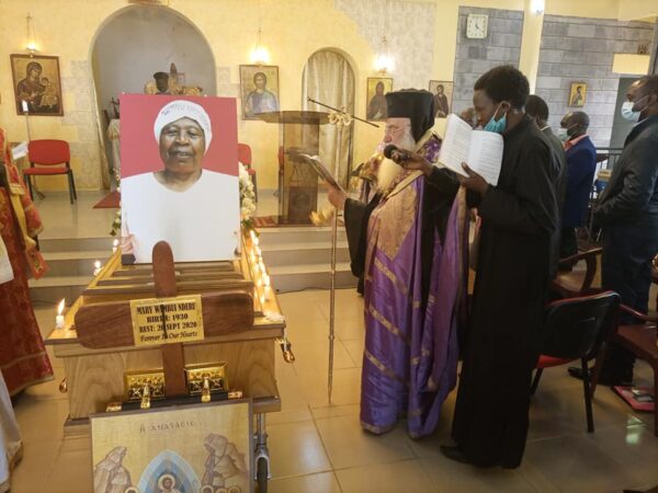 Ο Σεβ. Μητροπολίτης Γέρων Ναϊρόμπι, Yπέρτιμος και Έξαρχος Κένυας κ. Μακάριος, προεξήρχε της Εξοδίου Ακολουθίας της Mary Wambui Nderu. “Ήταν σπουδαία πρωτοπόρος της Ορθοδοξίας και έχει δώσει τα πάντα στην εκκλησία. Η Mary Wambui Nderu θα μας λείψει πολύ, αλλά την καλοσύνη και το ευγενικό πνεύμα της θα το θυμόμαστε για πάντα. Ας αναπαυθεί εν ειρήνη η ψυχή της και η μνήμη της ας είναι αιώνια” αναφέρει ο Σεβασμιώτατος Γέρων Ναιρόμπι σε επίκαιρη ανάρτησή του.