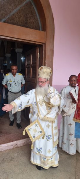 Στο τέλος ο Σεβασμιώτατος Μητροπολίτης Κινσάσας κ. Θεοδόσιος μετέφερε σε όλους τις πατρικές ευχές του Ποιμενάρχου της Αφρικανικής Ηπείρου Μακαριωτάτου Πάπα και Πατριάρχου Αλεξανδρείας και πάσης Αφρικής κ.κ. Θεοδώρου του Β’ . Ο Σεβασμιώτατος Μητροπολίτης Κινσάσας κ. Θεοδόσιος επαίνεσε τον π. Αγάπιο για την προετοιμασία των εγκαινίων του Ναού αλλά και για την αφοσίωση του και την δυναμική εργασία του στην Αρχιερατική περιφέρεια που του ανέθεσε η Εκκλησία.