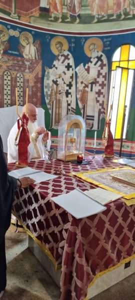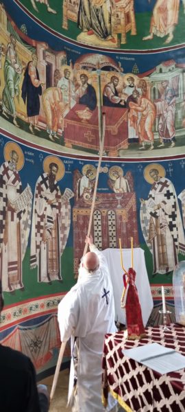 Ο Αρχιμανδρίτης Χρυσόστομος μίλησε στους πιστούς για την σημασία των Εγκαινίων ενός Ιερού Ναού και εξήγησε συνοπτικά τα της ακολουθίας.