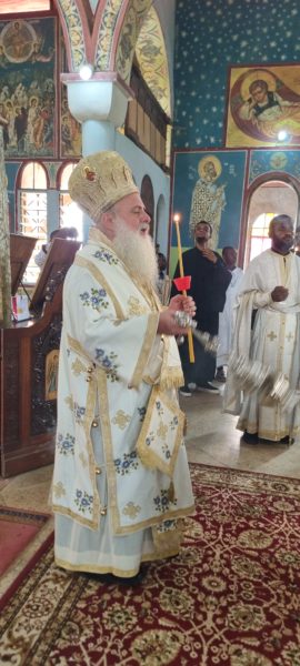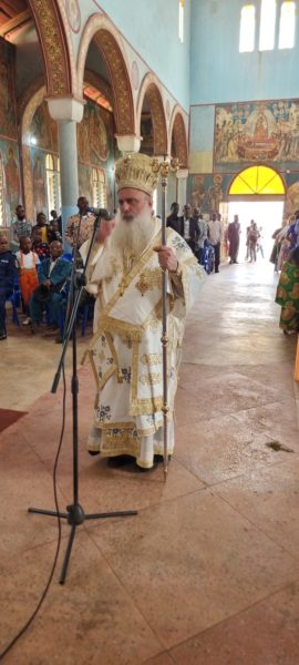 Ο Σεβασμιώτατος Μητροπολίτης Κινσάσας κ. Θεοδόσιος αναφέρθηκε με λόγους ευγνωμοσύνης στους δωρητές του Ναού αλλά και στον αείμνηστο προκάτοχό του Αρχιερέα Πενταπόλεως κυρό Ιγνάτιο, που ως Μητροπολίτης Κεντρώας Αφρικής έκτισε αυτόν τον Ναό και δημιούργησε την πρώτη Ορθόδοξη Κοινότητα σε αυτή την πόλη.