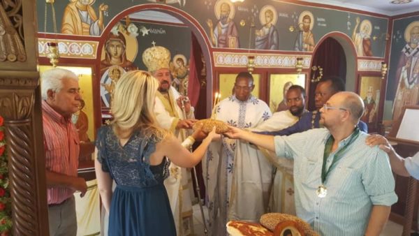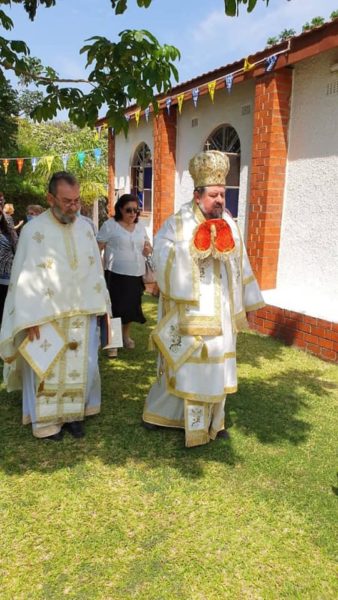 Ακολούθησε η πρώτη Αρχιερατική Πανηγυρική Θεία Λειτουργία του εγκαινιασμενου Ιερού Ναού μετ’ αρτοκλασίας , Θείου Κηρύγματος, ιερουργούντος του Σεβασμιωτάτου Μητροπολίτη Ζάμπιας κ. Ιωάννη και η περιφορά της εικόνας του Αγίου.