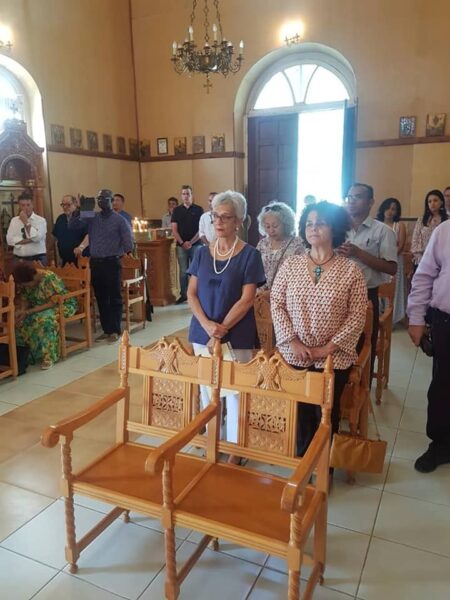 Η Θεία Λειτουργία τελέσθηκε στον Κοινοτικό Ιερό Ναό των Αγίων Κωνσταντίνου και Ελένης, με την παρουσία της Εριτ. Επίτιμης Προξένου της Ελλάδος στο Τζιμπουτί κας Αικατερίνης Στουραΐτη-Μεντζέντιμη, του Εντιμ. Προέδρου της Ελληνικής Κοινότητας κ. Ελευθερίου Γεωργαλή, του Εντιμ. Επίτιμου Προξένου του Καναδά, ιατρού κ. Νικολάου Γεωργαλή, μελών της Ελληνικής Παροικίας και Ορθοδόξων από άλλες χώρες.