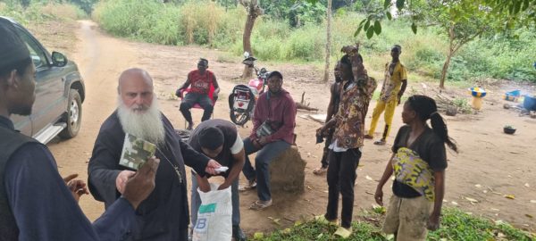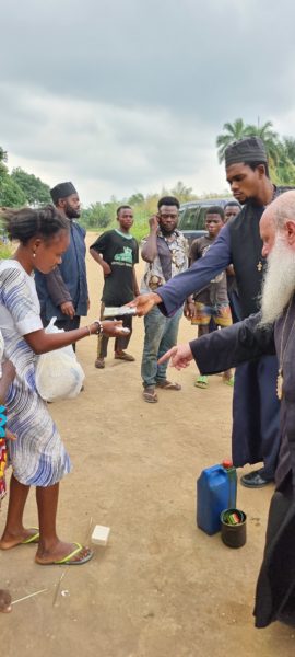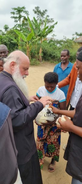 Στην συνέχεια η Ιεραποστολική ομάδα σταματούσε σε όλες τις καλύβες του χωριού προσφέροντας σε όλο τον κόσμο ρύζι, φασόλια, αλάτι και φάρμακα προσφορά και πάλι του κ. Γερασίμου Ντούνη. Τόσο η Ιερά Μητρόπολις, όσο και οι πιστοί της, ευχαριστούν τον κ. Γεράσιμο Ντούνη και την εκλεκτή σύζυγο του ιατρό κυρία Παρασκευή Τριαντάφυλλου Ντούνη για την έκδηλη αγάπη τους κατά την εορτή του Πάσχα στους φτωχούς αδελφούς.